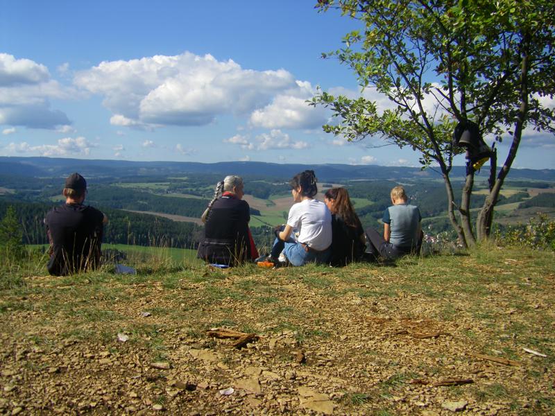 Suhl, im September 2025 Am 6. September 2025 fand die Jahresexkursion in die Reinsbergen zwischen Plaue und Ilmenau statt. Treffpunkt war der Bahnhof in Suhl. Nach leichter Verspätung fuhren wir mit dem Zug nach Plaue. Dort wurden wir schon von unseren Führern erwartet. Am Freibad entlang ging es nun durch den Wald, zunächst leicht bergauf an einigen Quellen vorbei. Nach ein paar Erklärungen wanderten wir weiter hinauf in die Reinsberge. Als der steilste Aufstieg an mächtigen Muschelkalkwänden entlang absolviert war, stärkten wir uns aus dem Rucksack und wurden mit einer schönen Aussicht auf das Land belohnt. Gespräche untereinander wurden gut genutzt. Nach dem Picknick wanderten wir weiter auf dem Kamm entlang und hatten weitere schöne Ausblicke auf das Land und die Wälder. Entlang des Weges fielen viele kleine Schlehensträucher und sehr viele Wacholdersträucher auf. Am Nachmittag fanden wir uns zu Kaffee und Kuchen im Café Landart in Kleinbreitenbach ein. Dort gingen die Gespräche untereinander weiter. Nach dem Kaffeetrinken hatten wir die Möglichkeit, die dortige Wehrkirche zu besuchen. Anschließend wanderten wir zum Bahnhof Plaue und fuhren zurück nach Suhl. Ein großer Dank geht an alle, die diesen schönen Tag zu einem tollen Erlebnis gemacht haben.